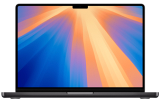 Displejs: Ekrāna lielums tiek mērīts pa diagonāli. 13 collu un 15 collu MacBook Air ar M2 un 14 collu un 16 collu MacBook Pro displeja augšējie stūri ir noapaļoti. Mērot kā standarta taisnstūri, ekrāna izmērs pa diagonāli ir 13,6 collas, 15,3 collas, 14,2 collas un 16,2 collas (faktiskais apskatāmais laukums ir mazāks).