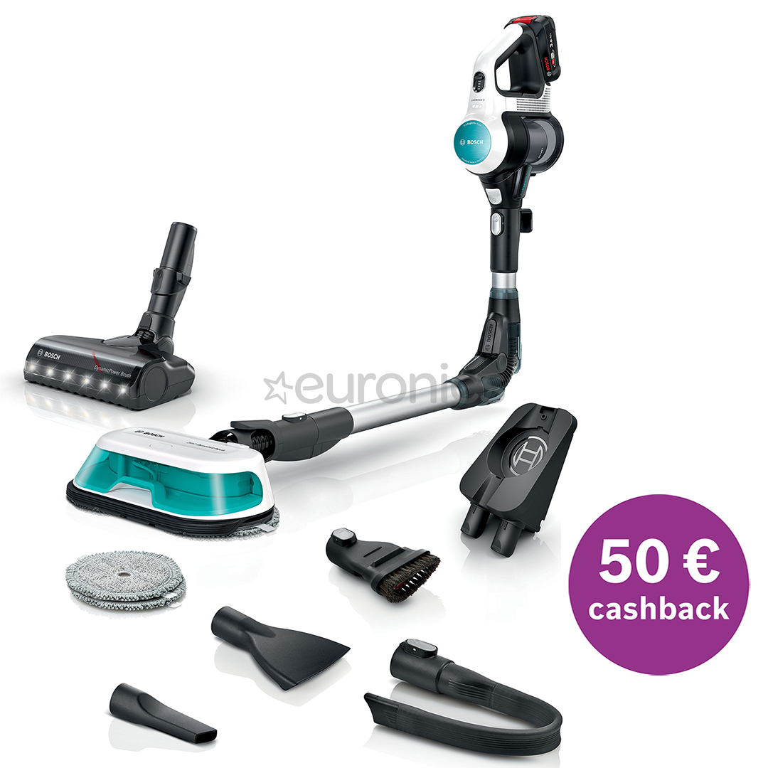 Bosch bezvadu putekļu sūcējs un mops piedāvā jaudīgu sūkšanu un rūpīgu slaucīšanu vienā ierīcē. HEPA filtrēšanas sistēma un novatoriskās funkcijas nodrošina tīru gaisu un izcilus tīrīšanas rezultātus, padarot mājokļa uzkopšanu vienkāršu un efektīvu.